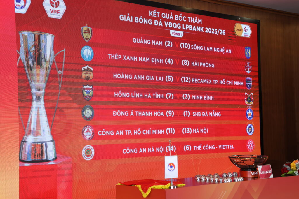 In the opening round of the V.League 2025/26, defending champions Nam Dinh will take on Hai Phong in a highly anticipated northern derby. Meanwhile, Hoang Anh Gia Lai (HAGL) will host Becamex Ho Chi Minh City, Ha Tinh face Ninh Binh, Thanh Hoa welcome Da Nang, and Hanoi FC begin their campaign away at newly rebranded CATP.HCM. Other matchups include Quang Nam versus Song Lam Nghe An and Hanoi Police FC against The Cong Viettel.