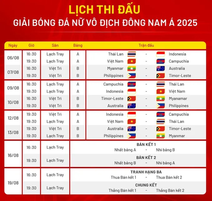 According to the official draw, hosts Vietnam have been placed in Group A alongside long-time rivals Thailand. The group also features Indonesia and Cambodia. Notably, Indonesia is expected to be a dark horse in this tournament, having recently strengthened their squad with several naturalized players. All Group A matches will be played at Lach Tray Stadium.