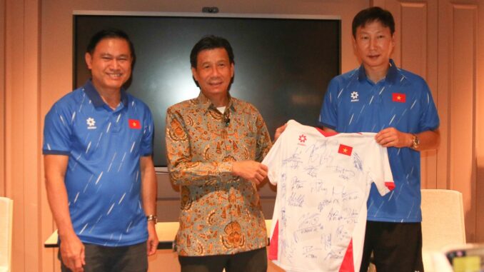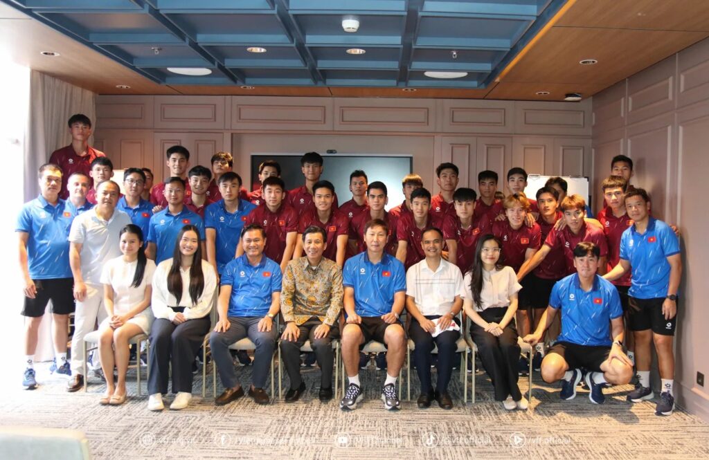 Indonesia, 24 July, 2025 – On the morning of July 24, Vietnamese Ambassador to Indonesia, Mr. Ta Van Thong, paid a visit to the U23 Vietnam national team to offer encouragement ahead of their semifinal clash against U23 Philippines at the 2025 ASEAN U23 Championship.