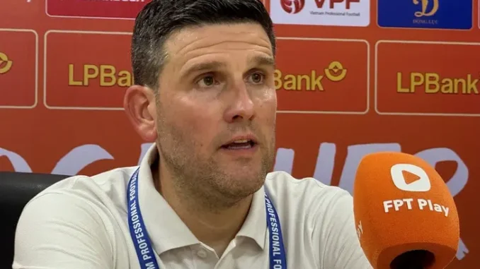 Ninh Binh, 1 November 2025 – Following Ninh Binh’s 1-1 draw with Ho Chi Minh City FC in Round 9 of V.League 1 2025-2026, head coach Guillermo Albadalejo voiced strong frustration regarding the reckless challenge that left midfielder Tran Thanh Trung seriously injured, criticizing the referee’s decision not to issue a red card.