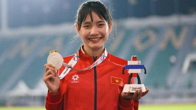 At SEA Games 33, Khanh Linh competed in only one event, the women’s 1,500 m. She claimed the silver medal with a time of 4 minutes 29.76 seconds, finishing behind her compatriot Bui Thi Ngan, who won gold in 4 minutes 27.34 seconds on December 11. Despite finishing second, Thai media noted that Khanh Linh still “won the hearts of Thai fans” thanks to her performance and on-track image.