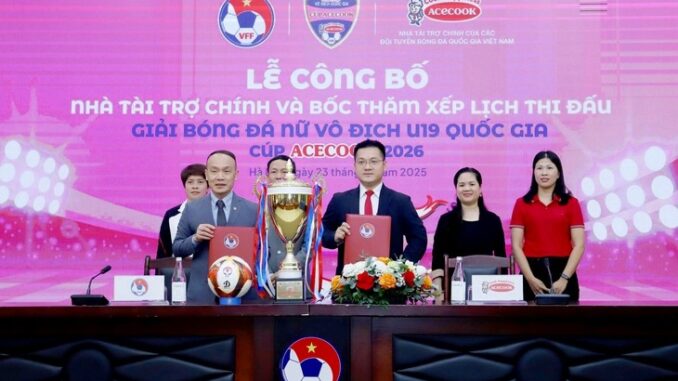On December 23, the Vietnam Football Federation hosted the official sponsorship launch and fixture draw for the National U19 Women’s Championship – ACECOOK Cup 2026 at its headquarters. Scheduled to run from January 7 to February 7, 2026, the competition will feature five teams: Hanoi, Phong Phu Ha Nam, Than Khoang San Viet Nam, Thai Nguyen T&T, and Ho Chi Minh City. The teams will compete in a double round-robin format, with matches held in both Hanoi and Ninh Binh.