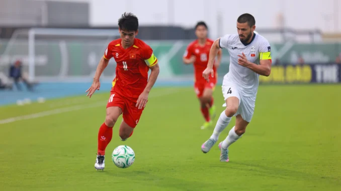 Vietnam finally found the breakthrough in the 87th minute. From sustained pressure, Van Thuan rose to meet a cross at close range, and the ball deflected off Brauzman before rolling into the net, leaving the Kyrgyz goalkeeper helpless. The goal sealed a 2-1 victory.