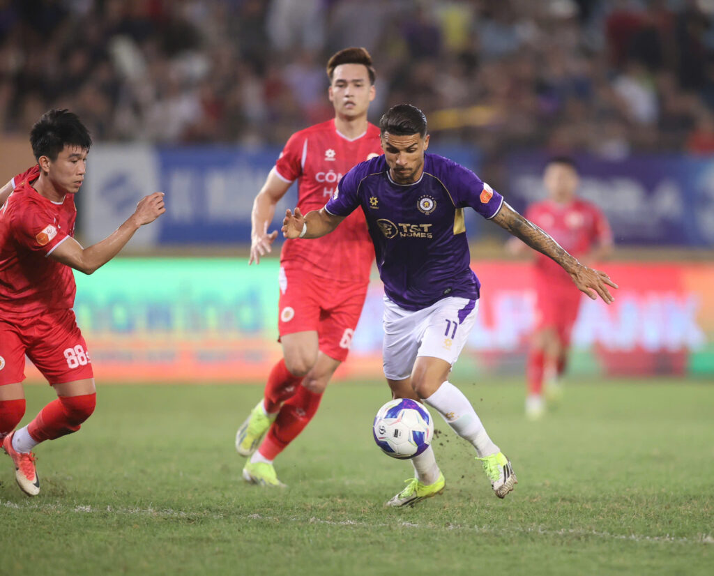 Hanoi Police FC pushed hard to respond and created several clear chances. Leo Artur nearly scored with a clever lob over Do Duy Manh and goalkeeper Van Chuan, but the defender recovered in time to clear the ball. Substitute Rogerio Alves also came close on multiple occasions but was denied by Van Chuan, missed the target, and later struck the crossbar.